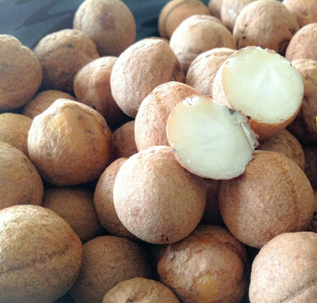 Cette noix peut être mangée fraîche, séchée, cuite, grillée ou bouillie. Ces amandes très oléagineuses sont riches en acide oléique.